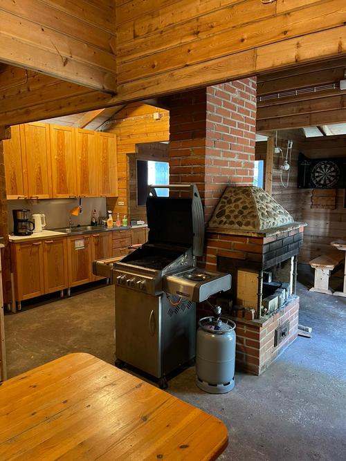 Keittokatoksessa voi grillata puilla tai kaasugrillillä. Siellä on myös 4 keittolevyä.